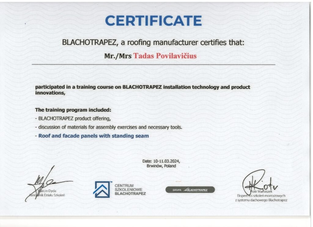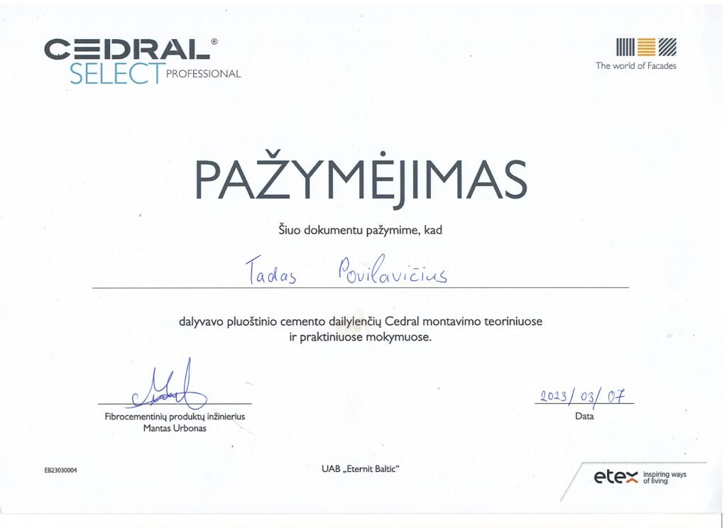 Specializuojamės karkasinių namų statyboje, stogų montavime ir fasadų įrengime. Kiekvienam projektui suteikiame pilnas garantijas pagal Lietuvos teisės aktus – dirbame taip, kad mūsų darbais galėtumėte džiaugtis dešimtmečius.